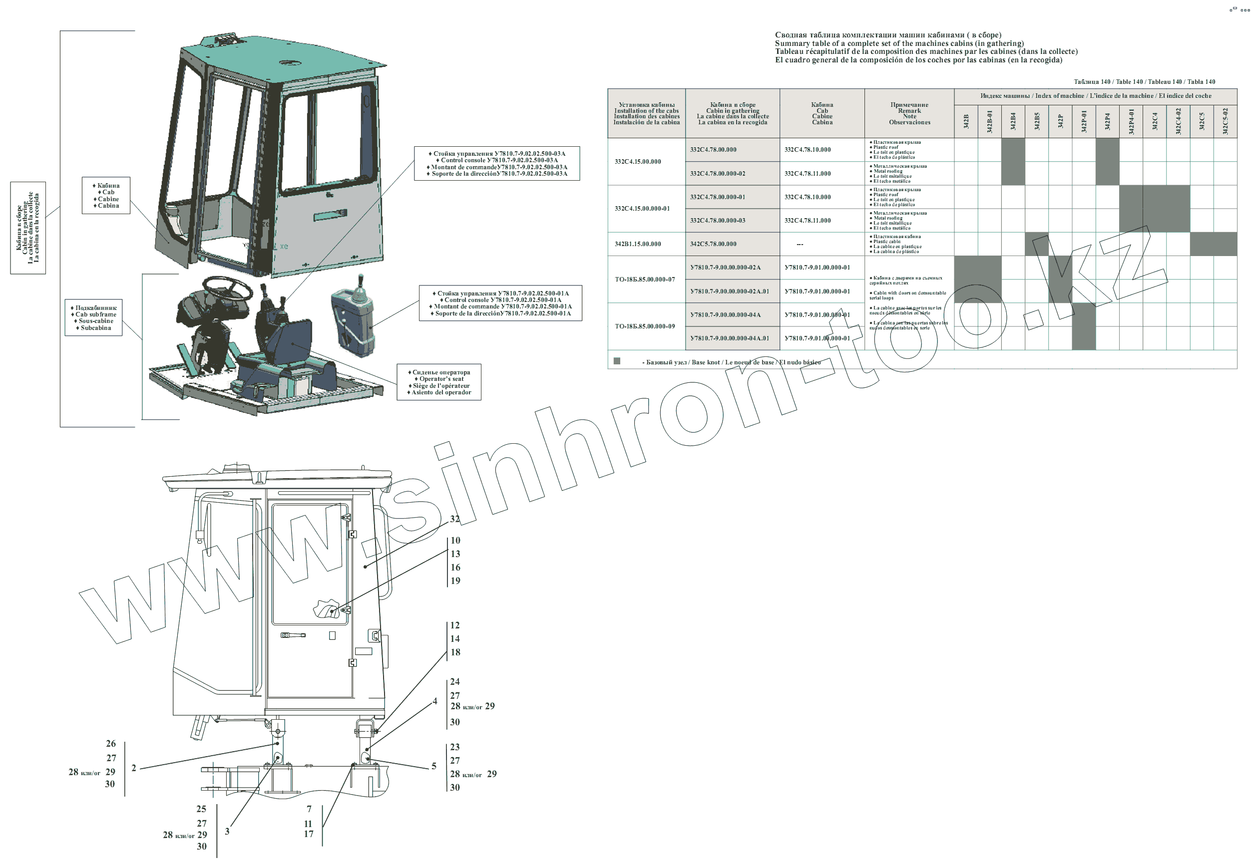Каталог запасных частей к технике: Амкодор-342В, 342С4, 342Р. Установка кабин