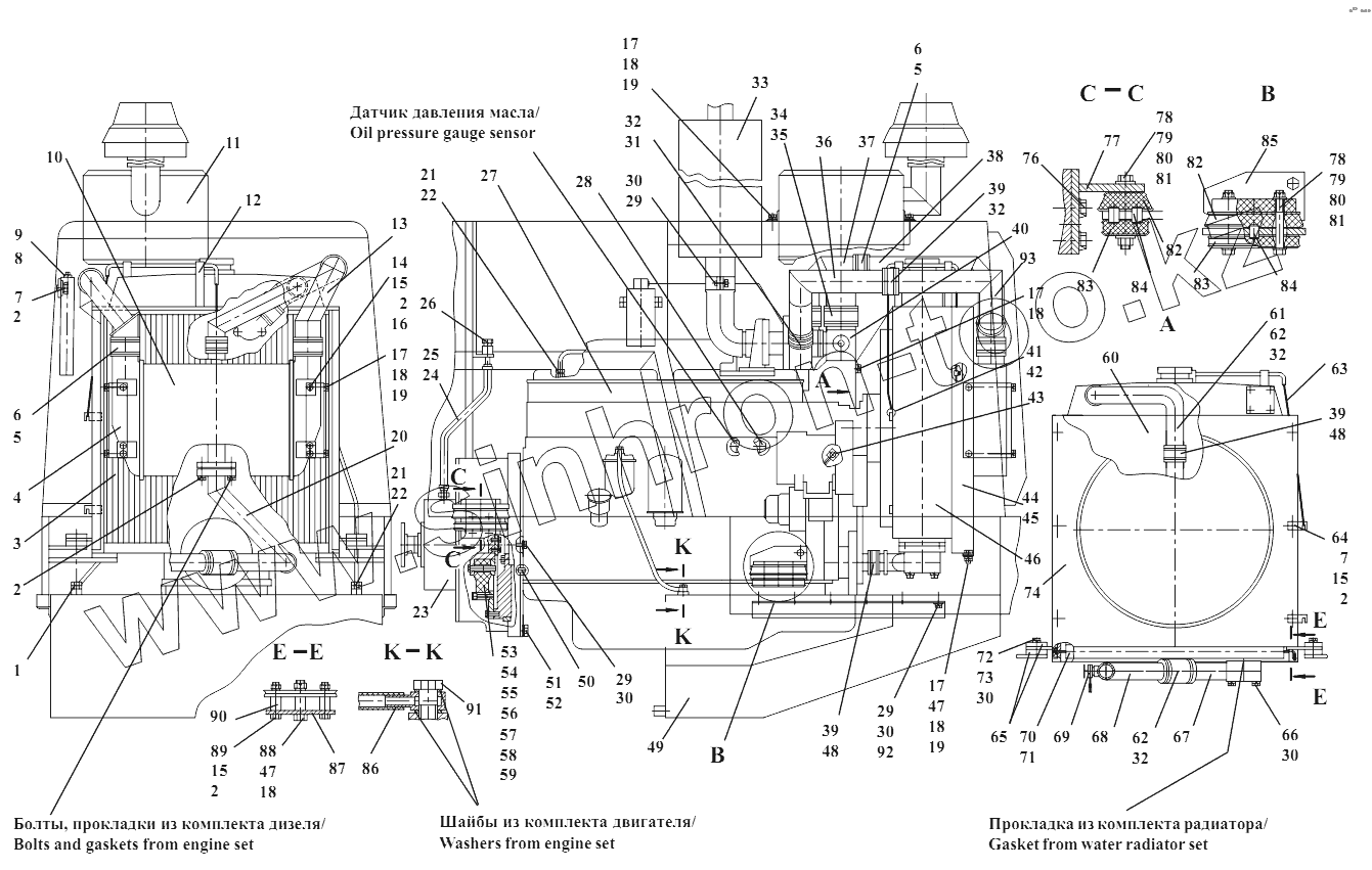 Каталог запасных частей к технике: Амкодор-352. 350.02.00.000 Установка силовая