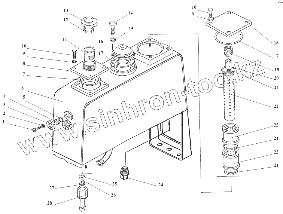 Каталог запасных частей к технике: Амкодор-352. 350.06.16.000 Гидробак