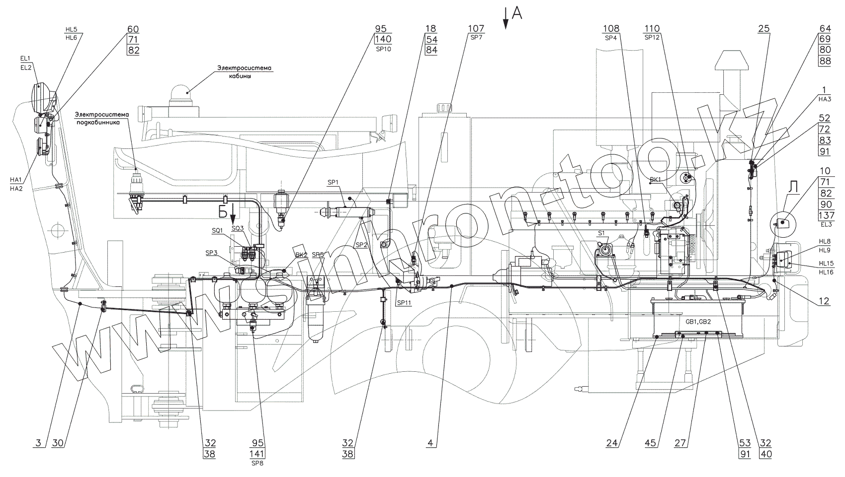 Каталог запасных частей к технике: Амкодор-352. Электросистема 342С4.37.00.000