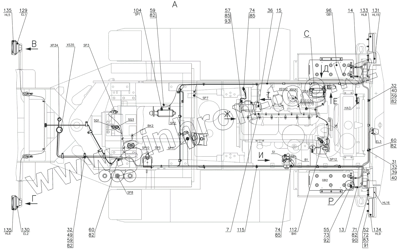 Каталог запасных частей к технике: Амкодор-352. Электросистема 342С4.37.00.000