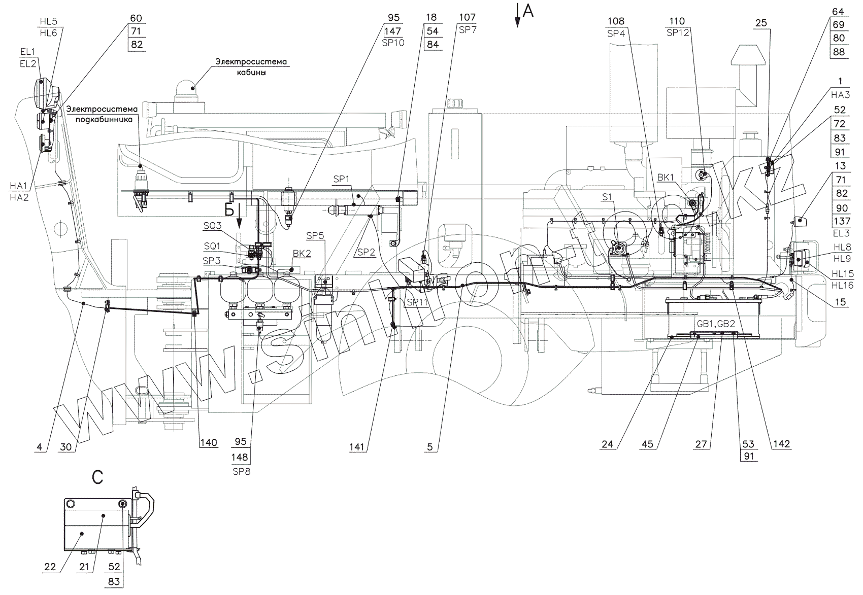 Каталог запасных частей к технике: Амкодор-352. Электросистема 342В.11.00.000Т