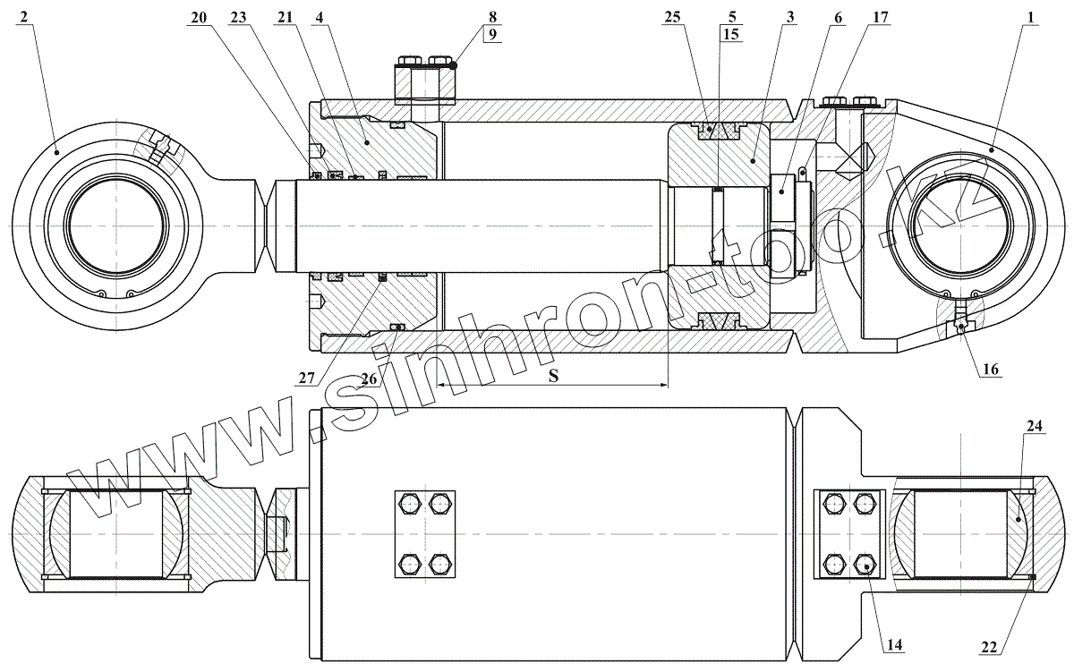 Каталог запасных частей к технике: Амкодор-352. Гидроцилиндр КГЦ635.180-80-500
