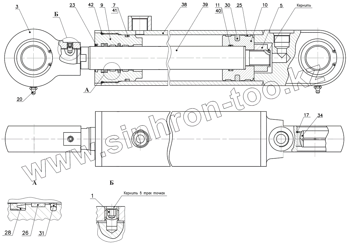Каталог запасных частей к технике: Амкодор-352. Гидроцилиндр Ц080040.00.000-В