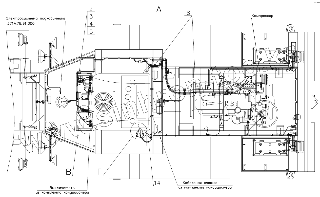Каталог запасных частей к технике: Амкодор-352СА. Электросистема кондиционера 371А.81.85.000