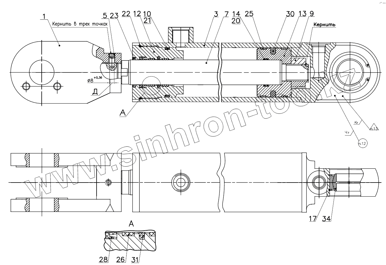 Каталог запасных частей к технике: Амкодор-352СА. Гидроцилиндр 352СА.34.07.100