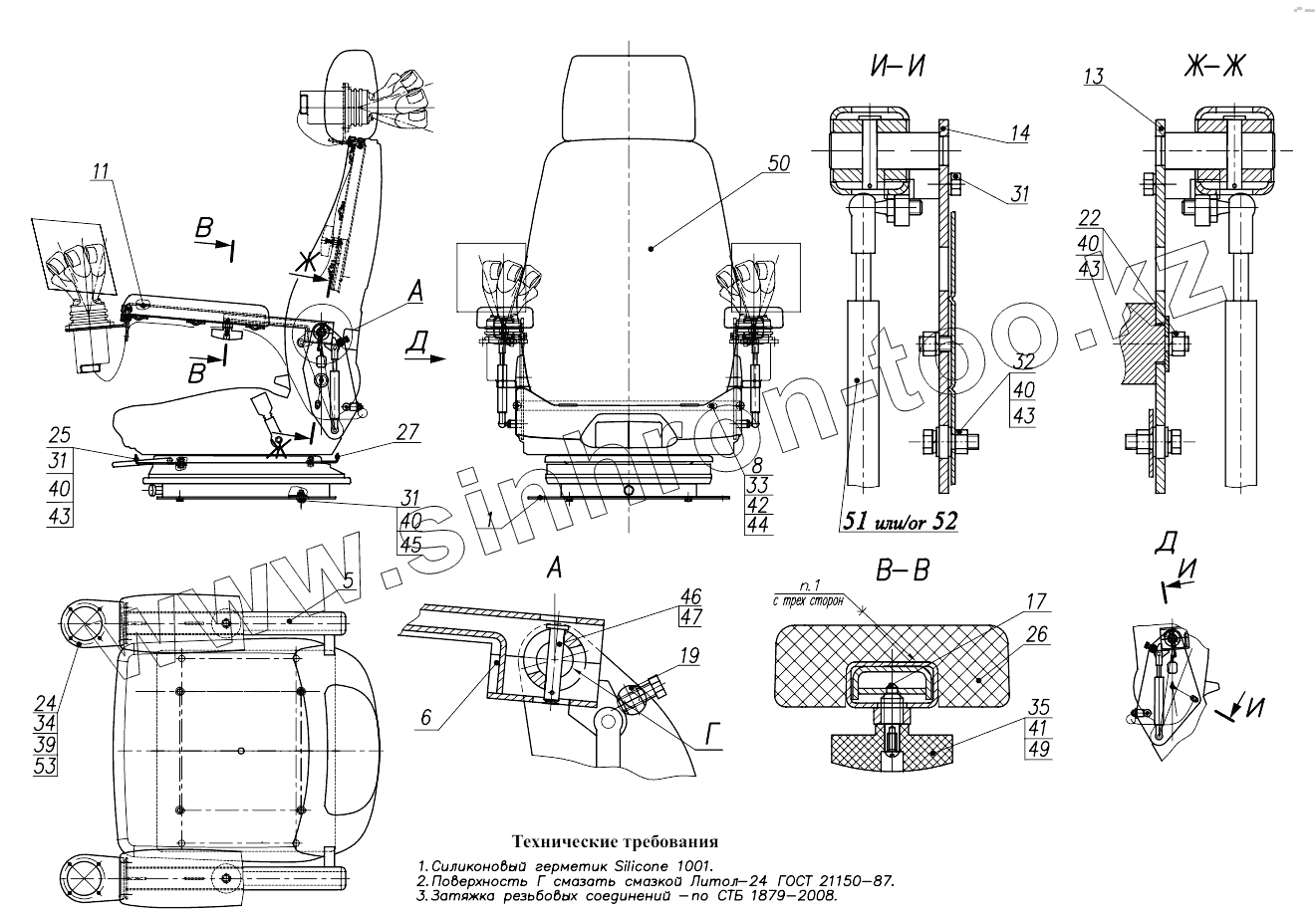 Каталог запасных частей к технике: Амкодор-352СА. Сиденье 352СА.68.00.000