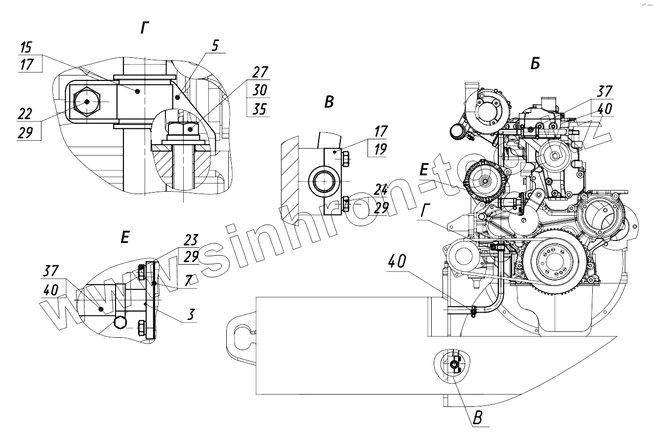 Каталог запасных частей к технике: Амкодор-352СА. Установка подогревателя 352СА.10.15.000
