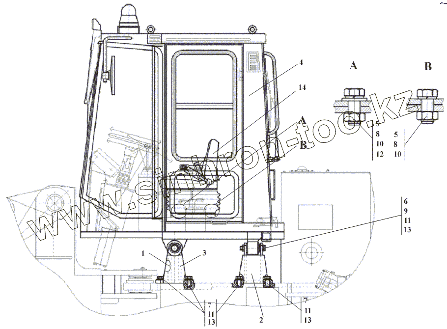 Каталог запасных частей к технике: Амкодор-361. 361-78.00.000 Установка кабины