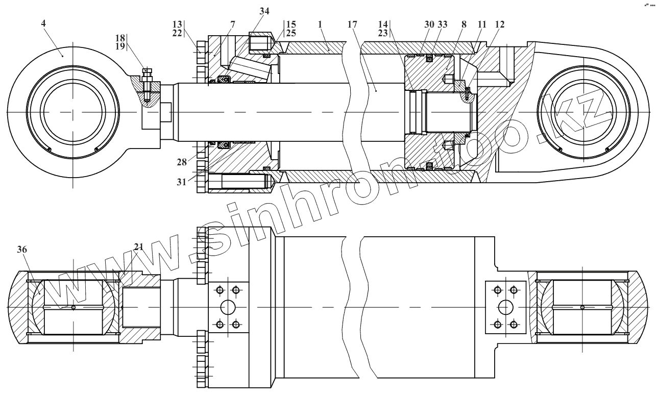 Гидроцилиндр 361.45.68.100 (погрузчик АМКОДОР 371А), 361.45.68.100-01 (погрузчик АМКОДОР 371А-01)