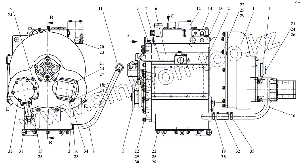 Каталог запасных частей к технике: Амкодор-451A. 451-38.01.000 Передача гидромеханическая