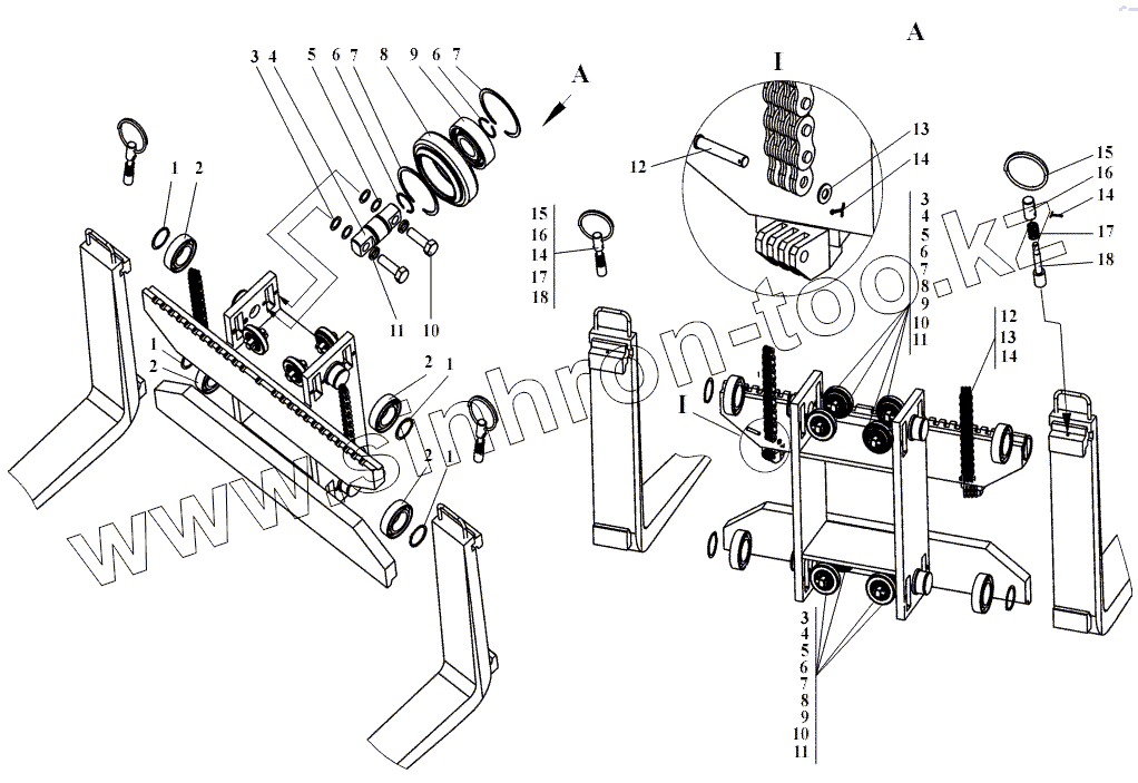 Каталог запасных частей к технике: Амкодор-451A. 451-61.00.000-01 Грузоподъемник