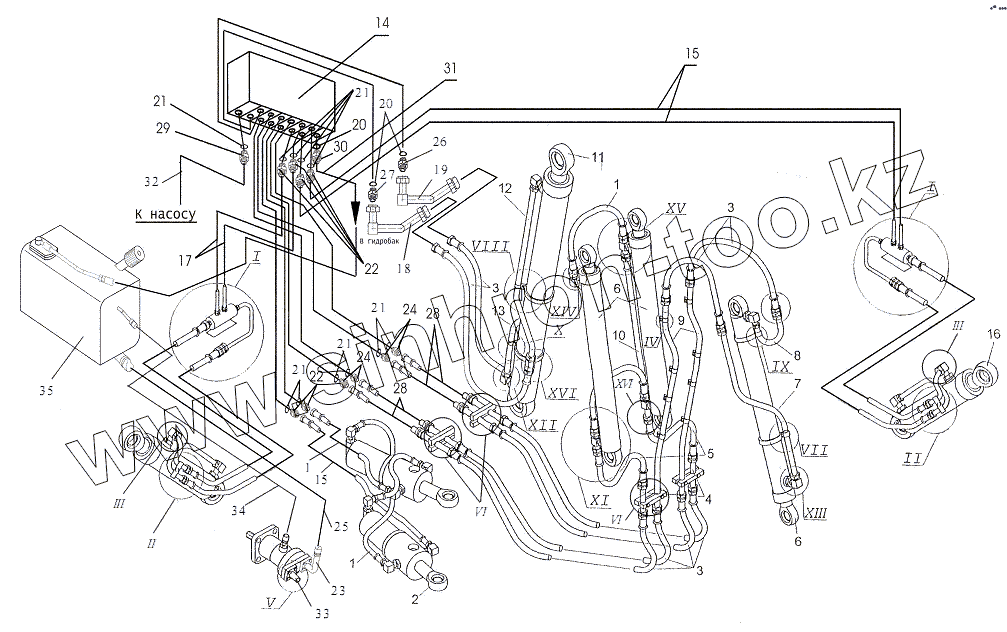 Каталог запасных частей к технике: Амкодор-702. 702A.11.00.000 Гидросистема