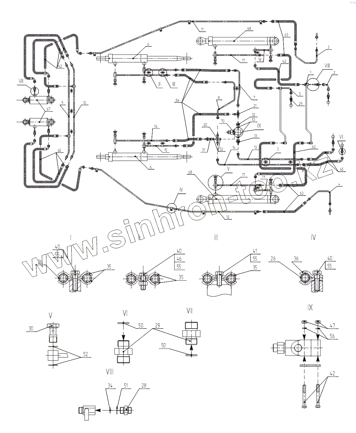 Каталог запасных частей к технике: Амкодор-702EA. 702ЕА.45.00.000 Гидросистема
