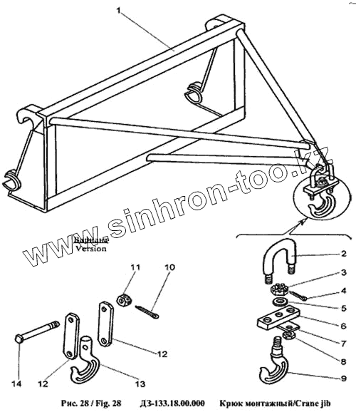 Каталог запасных частей к технике: Амкодор-702В (ТО-49-40). Крюк монтажный