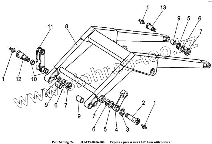 Каталог запасных частей к технике: Амкодор-702В (ТО-49-40). Стрела с рычагами