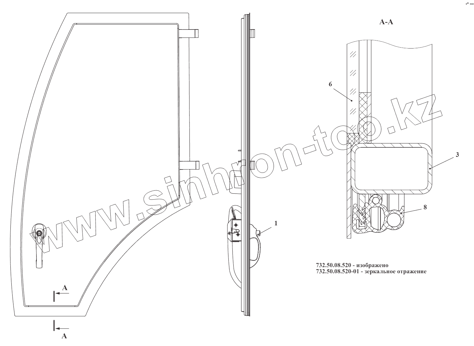 Каталог запасных частей к технике: Амкодор-732. Дверь 732.50.08.520