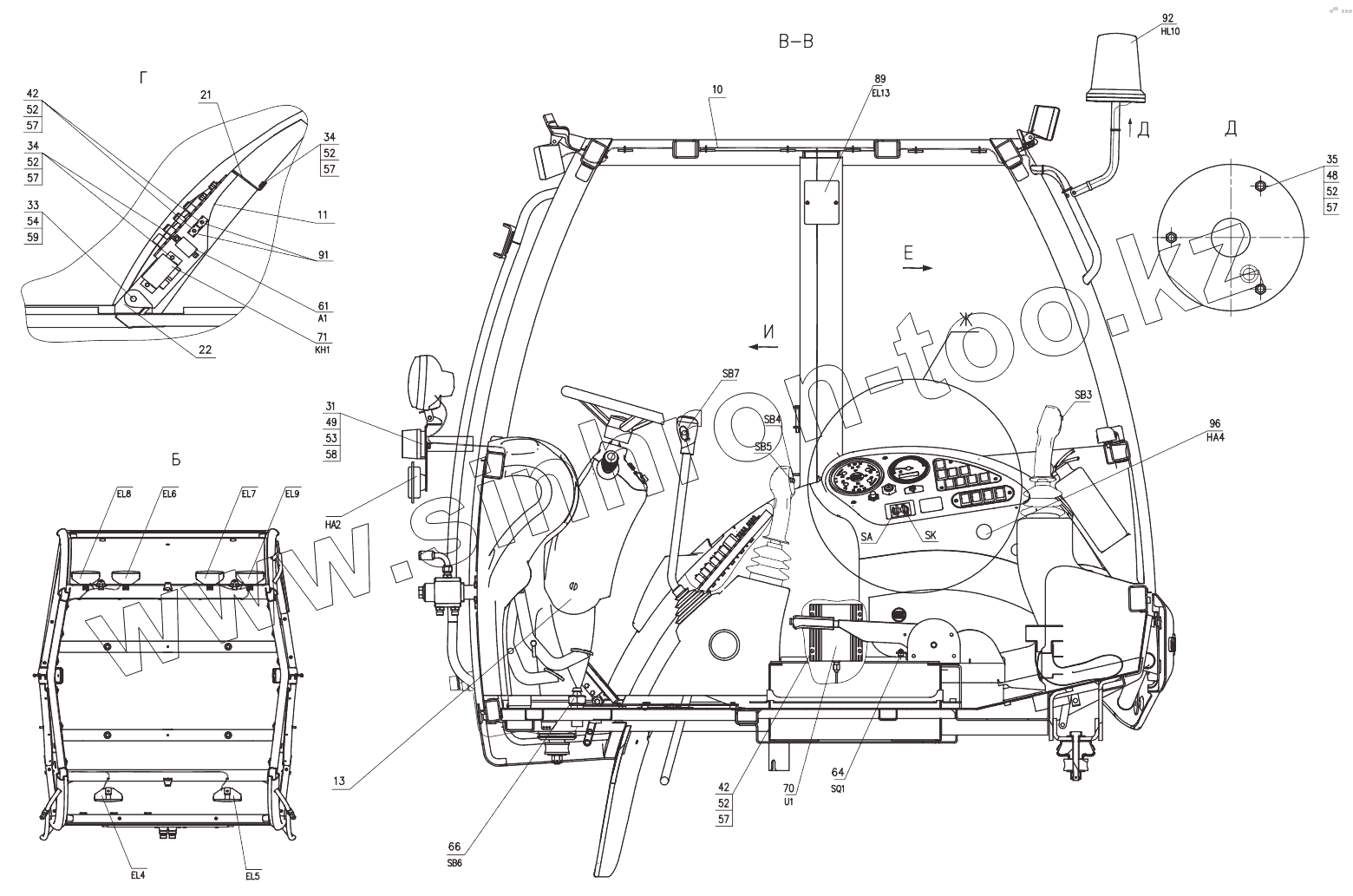 Каталог запасных частей к технике: Амкодор-732. Электросистема кабины 732.38.00.000