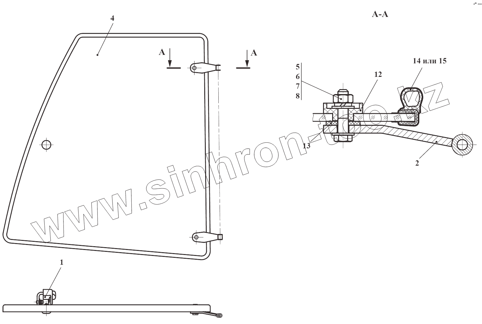 Каталог запасных частей к технике: Амкодор-732. Окно боковое 732.50.08.150Т