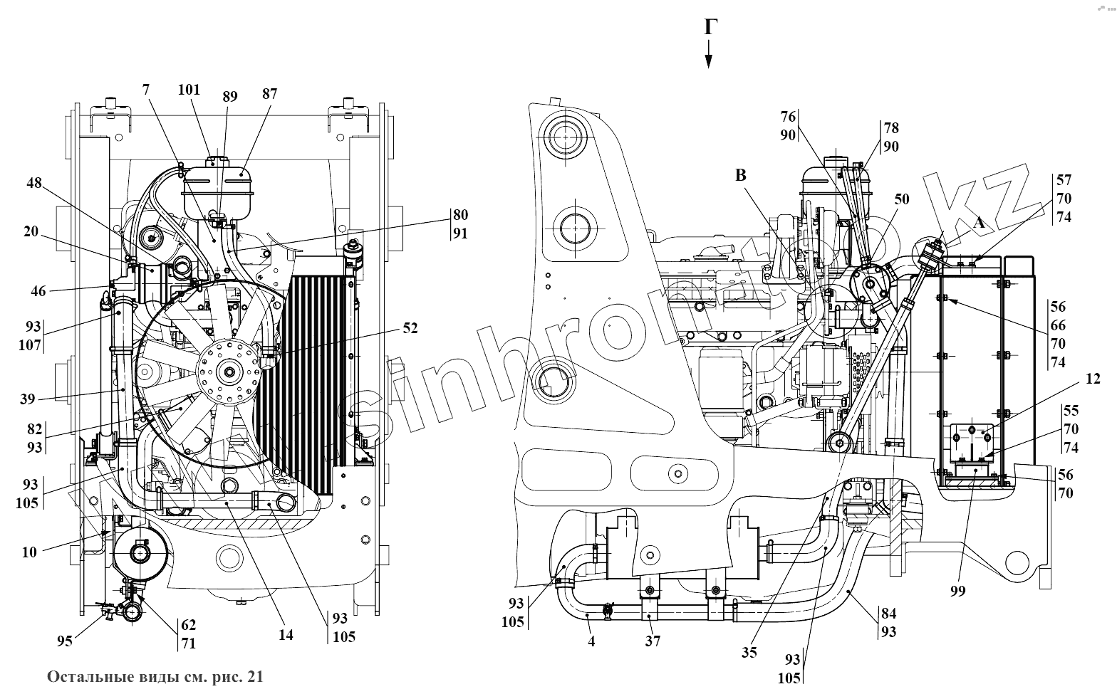 Каталог запасных частей к технике: Амкодор-732. Система охлаждения 732.13.00.000Т