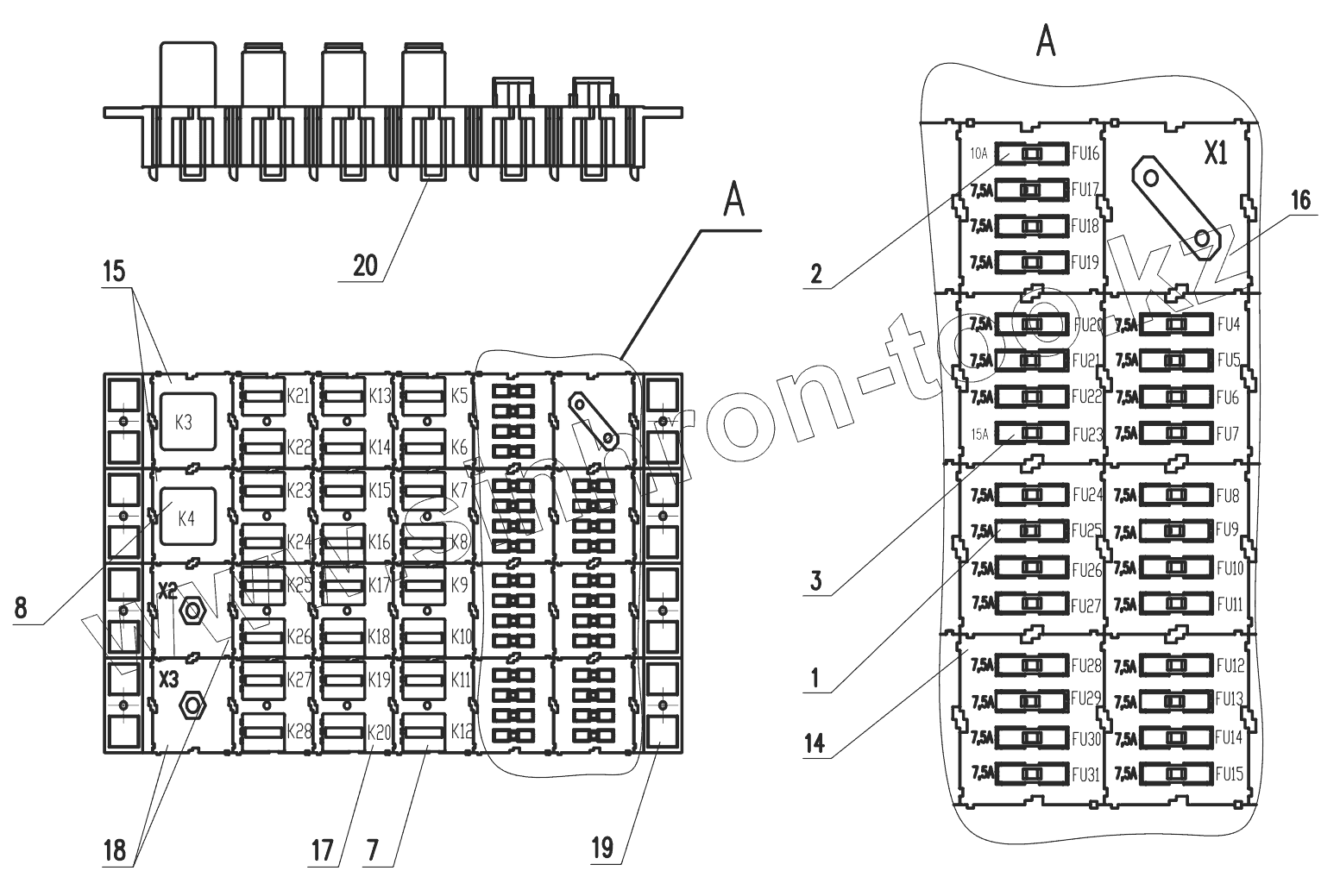 Каталог запасных частей к технике: Амкодор-732. Блок коммутации 732.38.01.000