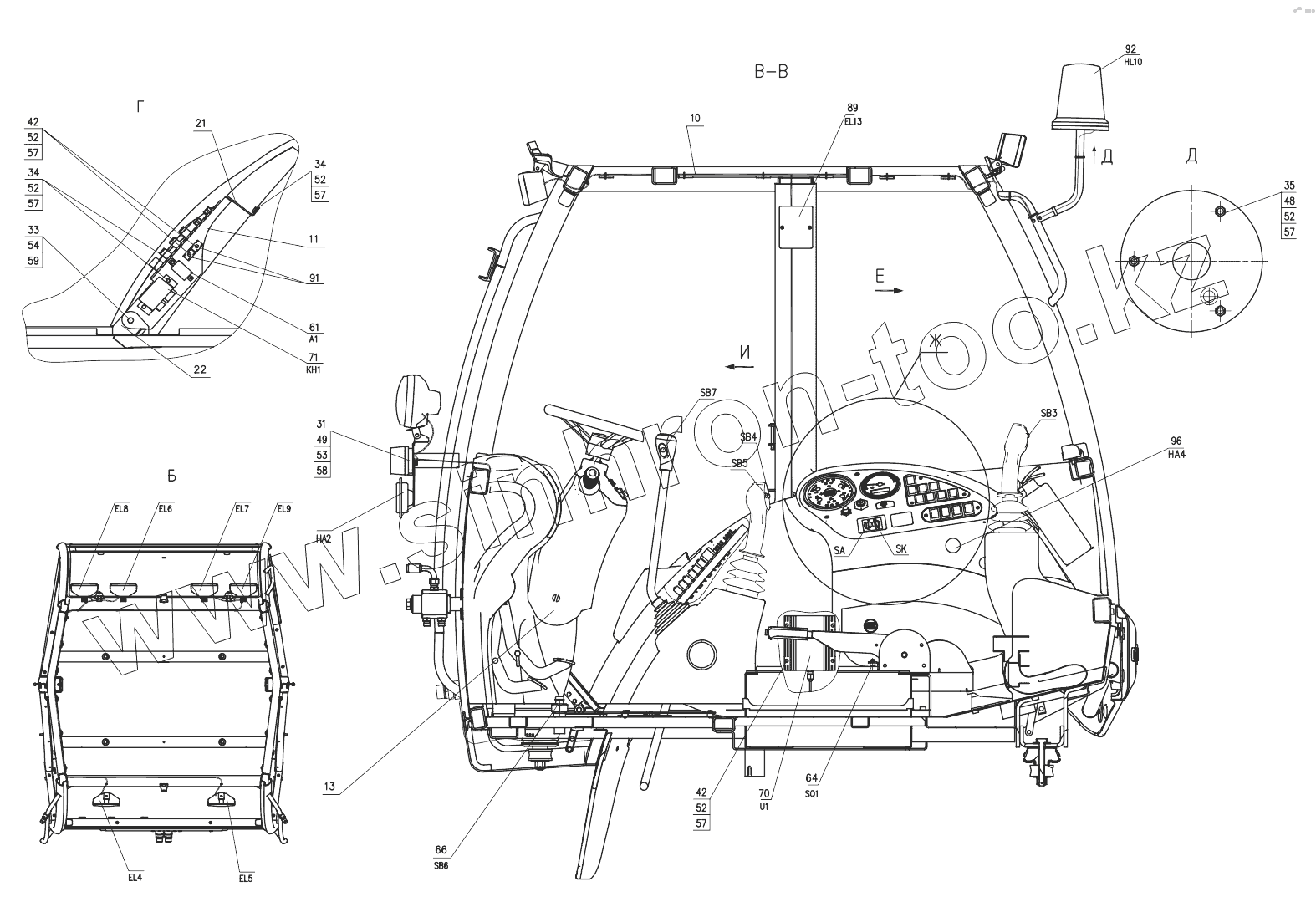 Каталог запасных частей к технике: Амкодор-732. Электросистема кабины 732.38.00.000