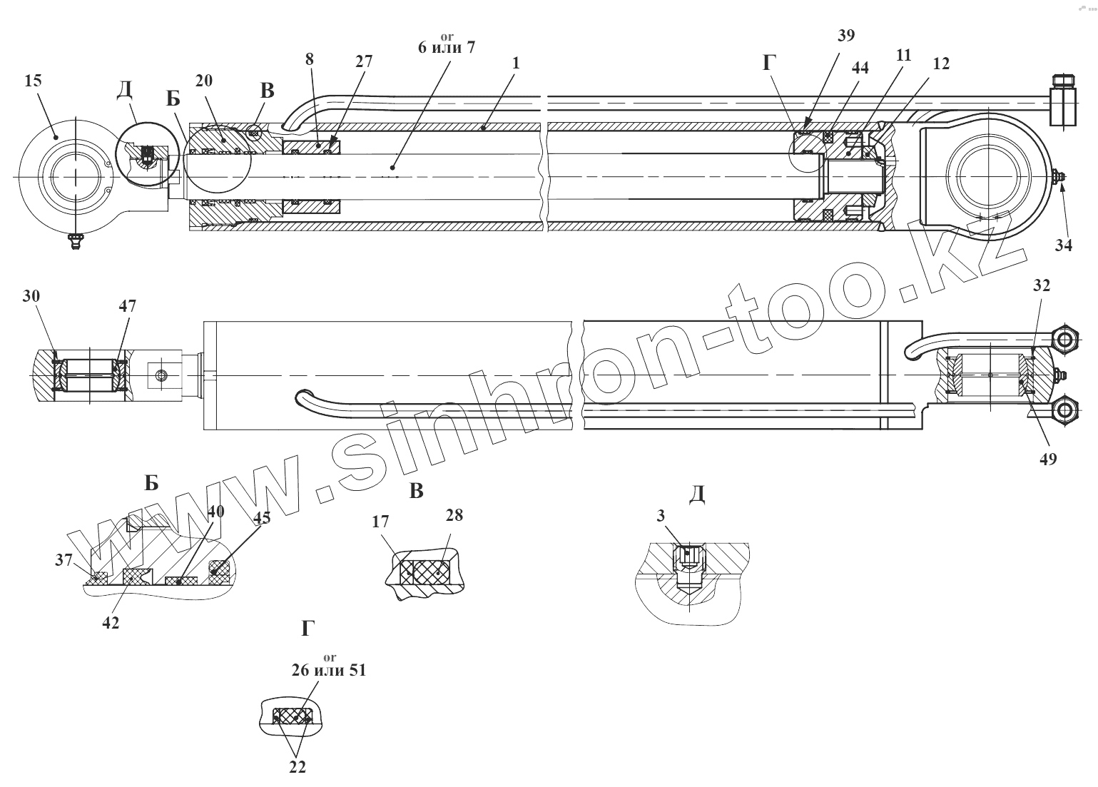 Каталог запасных частей к технике: Амкодор-732. Гидроцилиндр 732.28.51.400