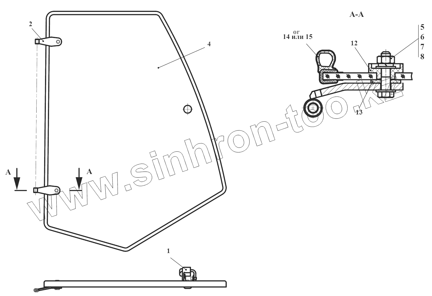 Каталог запасных частей к технике: Амкодор-732. Окно боковое 732.50.08.120Т