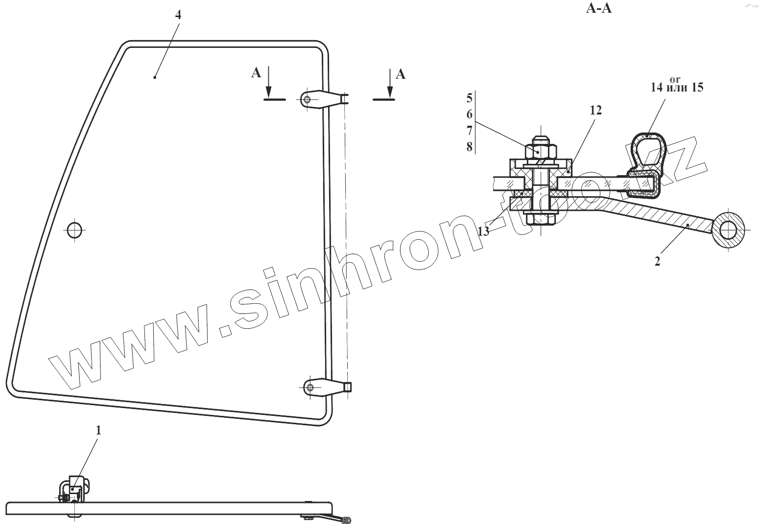 Каталог запасных частей к технике: Амкодор-732. Окно боковое 732.50.08.150Т