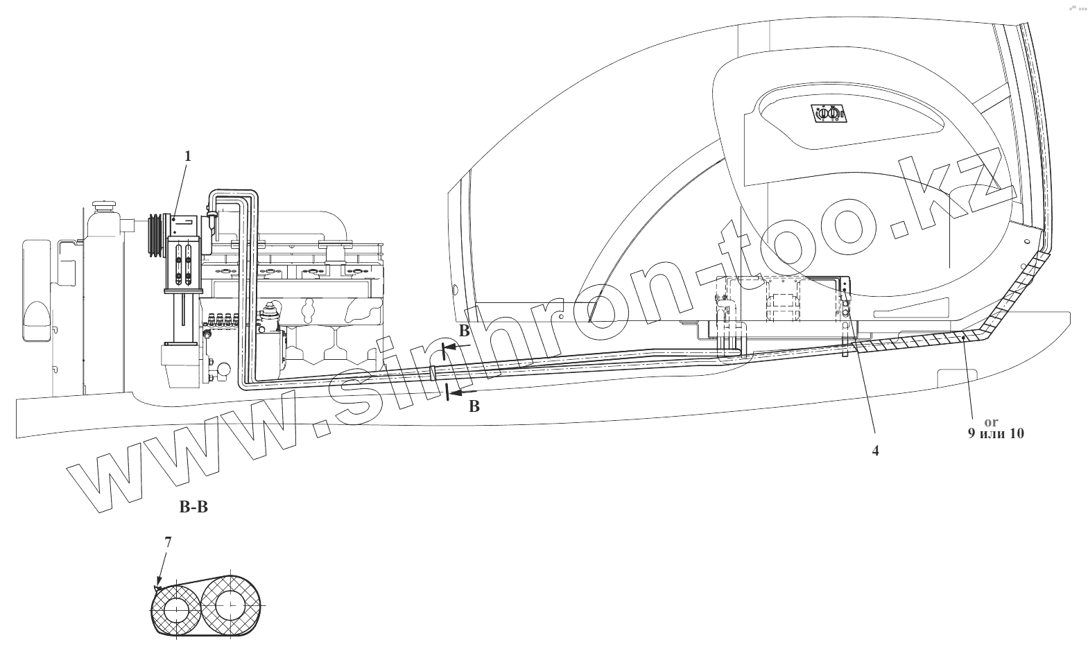 Установка трубопроводов отопителя кабины 732.83.00.000