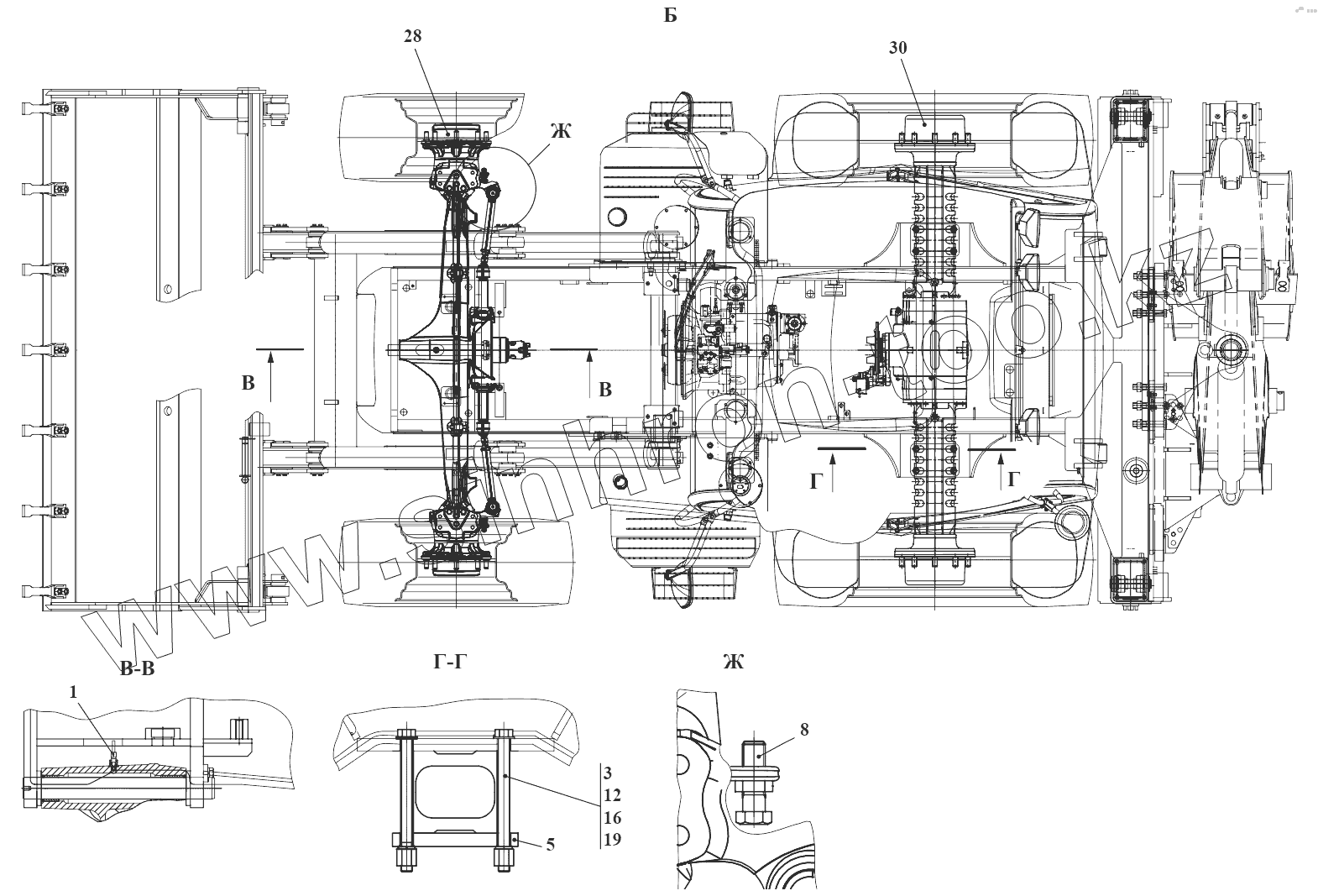 Каталог запасных частей к технике: Амкодор-732. Установка мостов 732.29.00.000