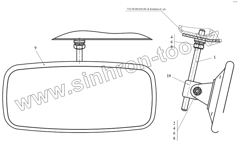 Каталог запасных частей к технике: Амкодор-732. Зеркало внутреннее 732.82.01.200