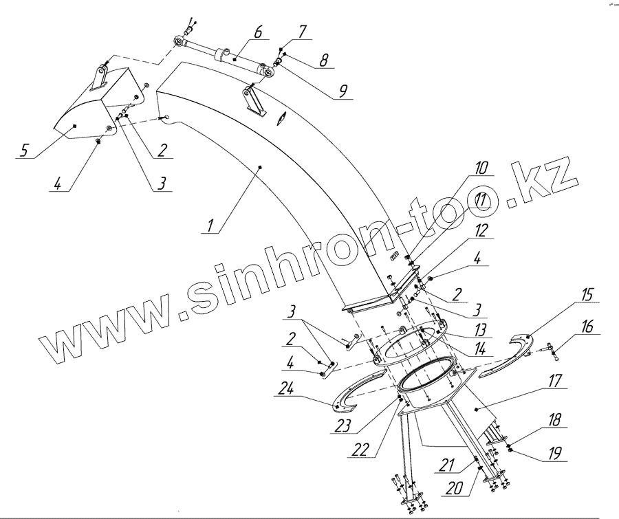 Каталог запасных частей к технике: Амкодор-9211А1. УСТАНОВКА ЖЕЛОБА 9211А1.15.00.000