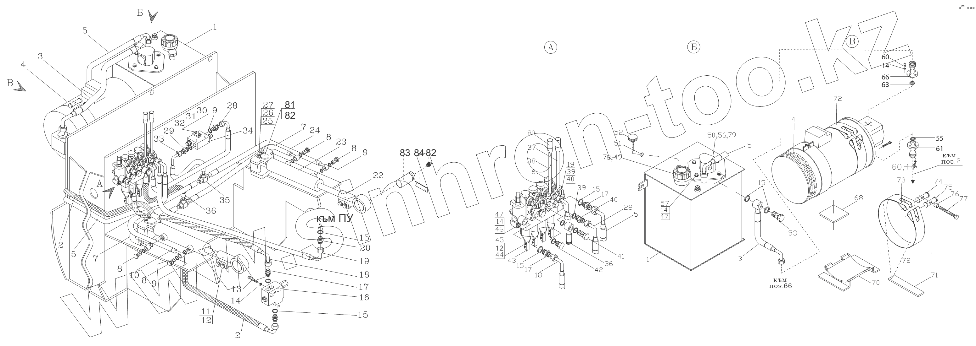 Каталог запасных частей к технике: Амкодор-Е16. Гидравлическая система в сборе