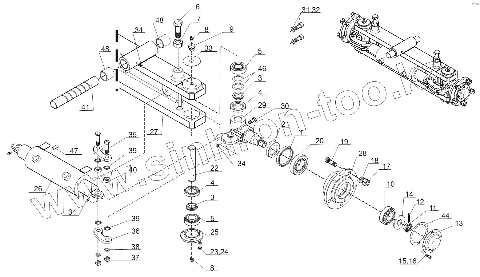 Каталог запасных частей к технике: Амкодор-Е16. Мост управляемый в сборе