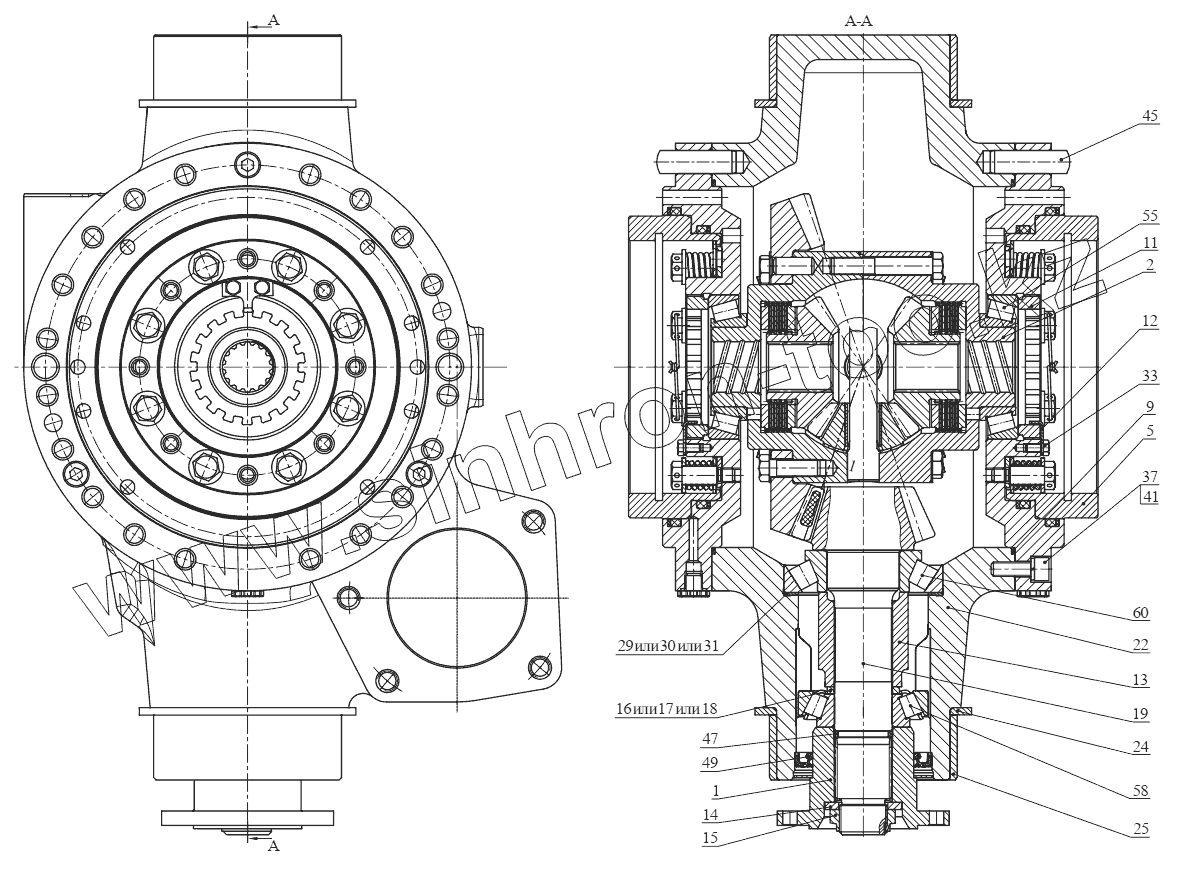 Каталог запасных частей к технике: Амкодор Т400-70. Главная передача 15н.23.02.000