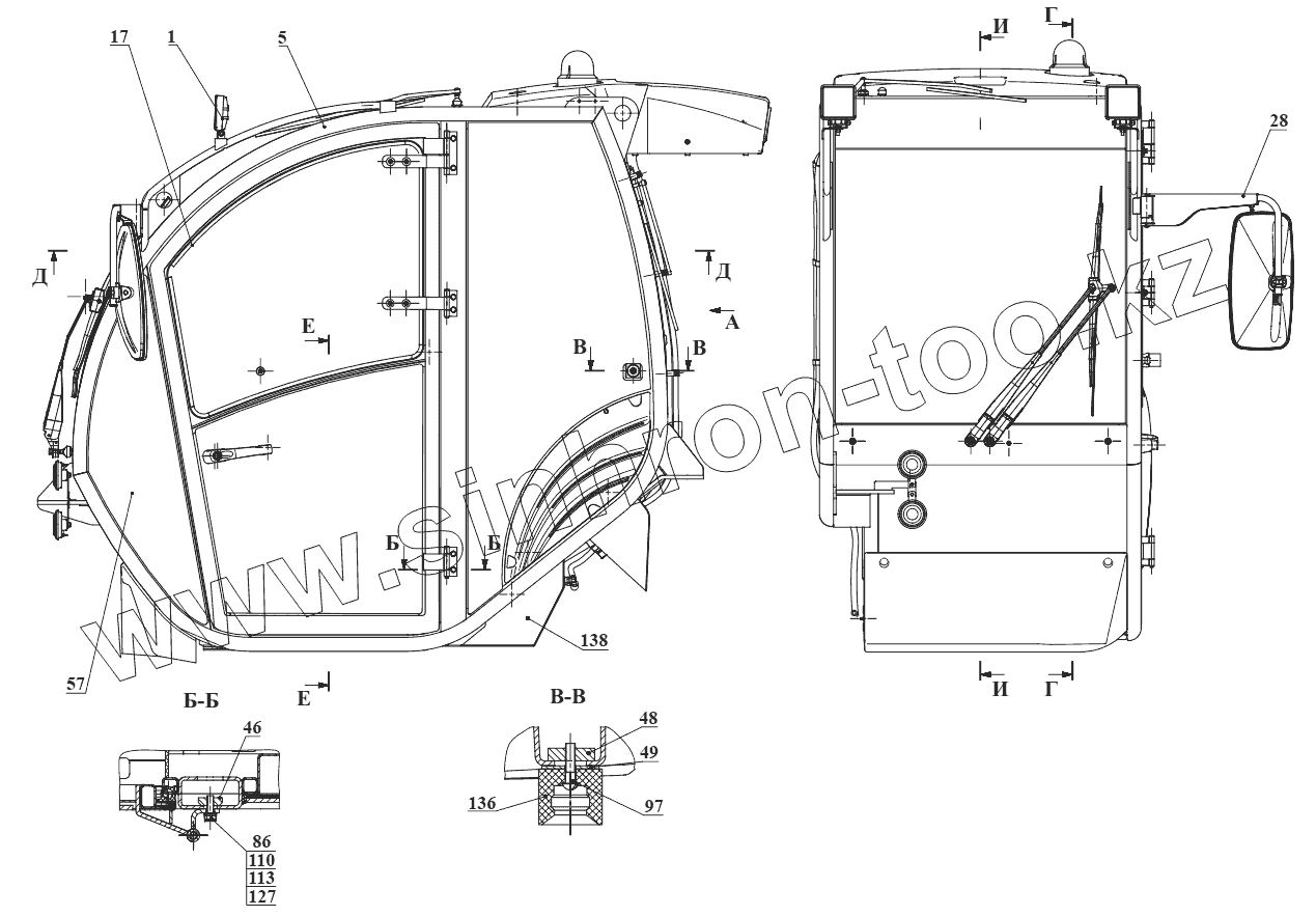 Каталог запасных частей к технике: Амкодор Т400-70. Кабина 540-70.50.00.010