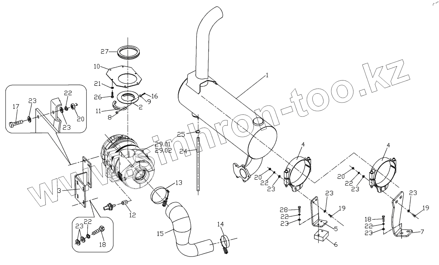 Каталог запасных частей к технике: Ammann ARS122. Intake and exhaust Assembly