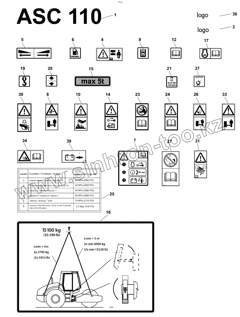 Каталог запасных частей к технике: Ammann ASC 110. Signage