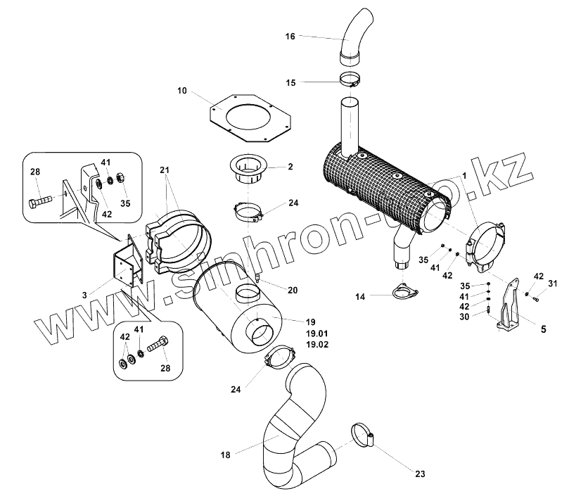 Каталог запасных частей к технике: Ammann ASC 170. Intake and exhaust pipe