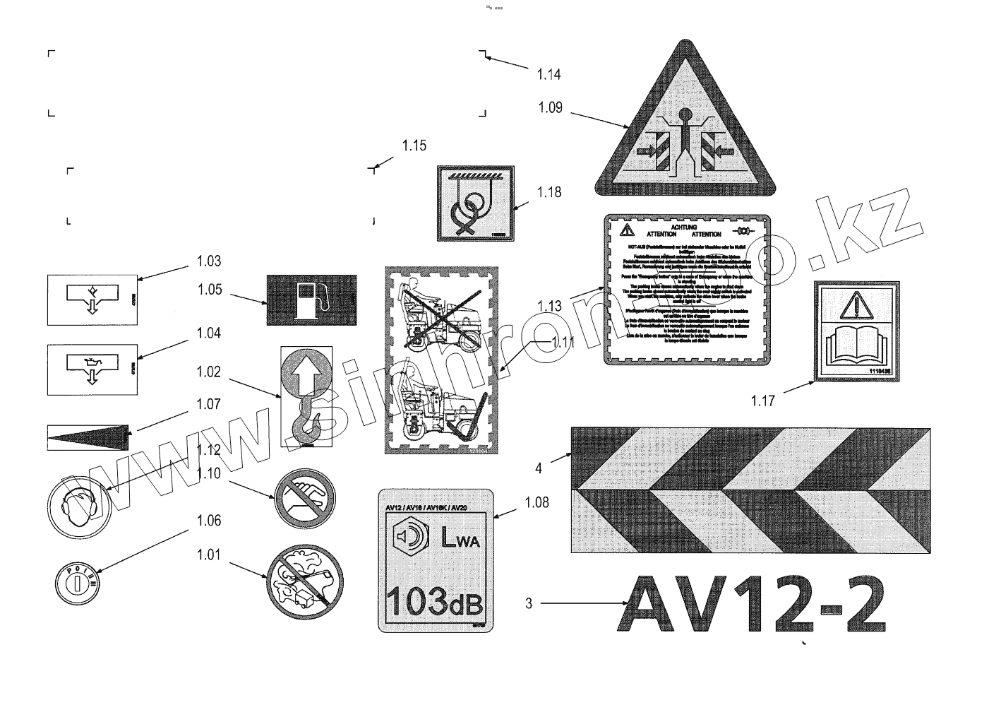 Каталог запасных частей к технике: Ammann AV16-2. ESL 08-010AV12-2 Decals AV12-2