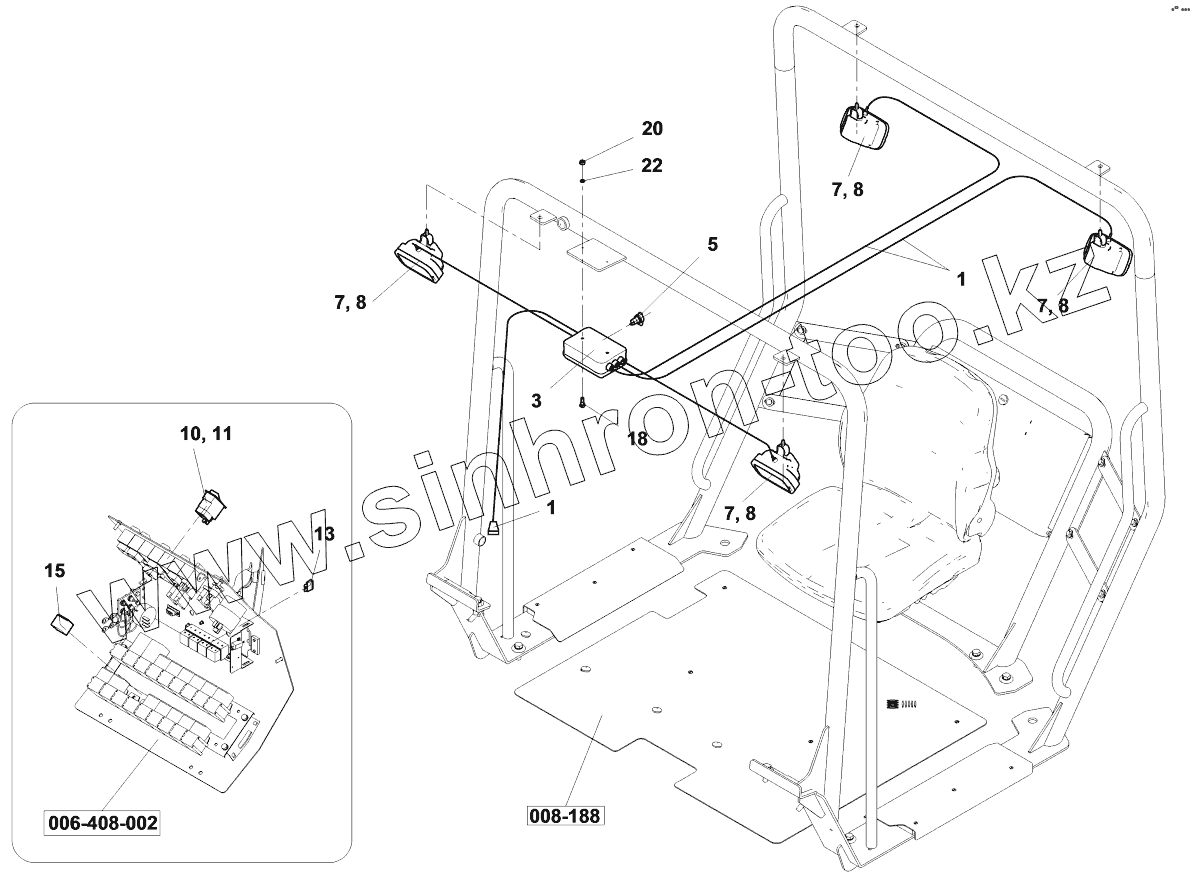 Каталог запасных частей к технике: Ammann AV 70X. Auxiliary headlamps - operator platform