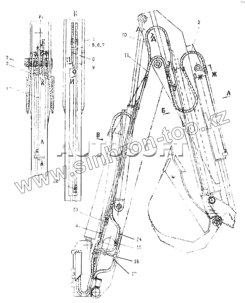 Каталог запасных частей к технике: Атек-2324-1. Гидроразводка обратной лопаты