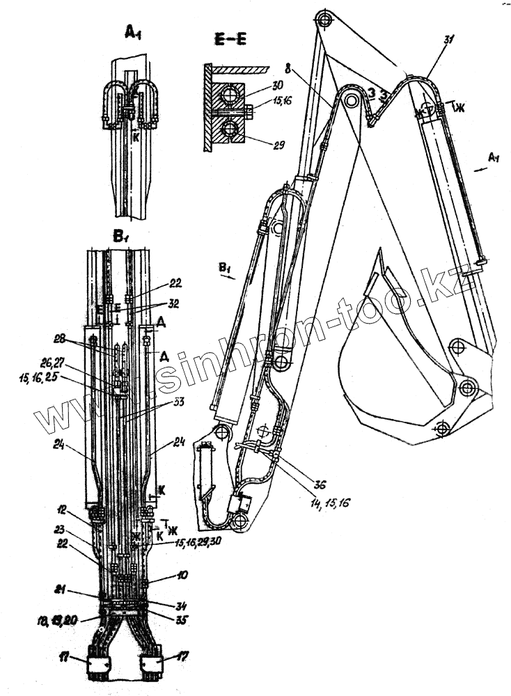 Каталог запасных частей к технике: Атек-999Е. Гидроразводка обратной лопаты