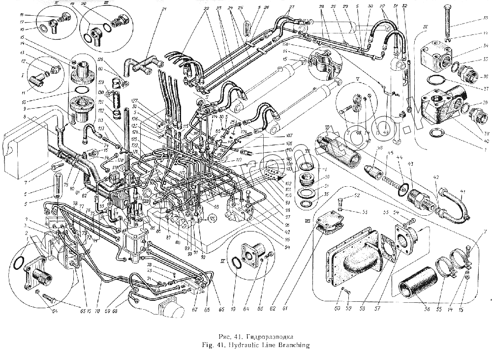 Каталог запасных частей к технике: Атек Э-5015А. Гидроразводка