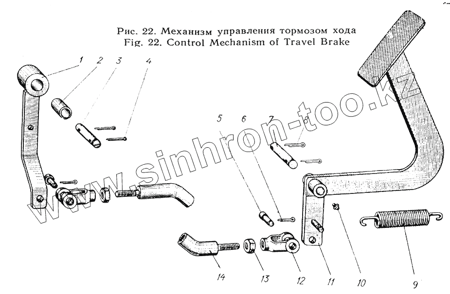 Каталог запасных частей к технике: Атек Э-5015А. Механизм управления тормозом хода