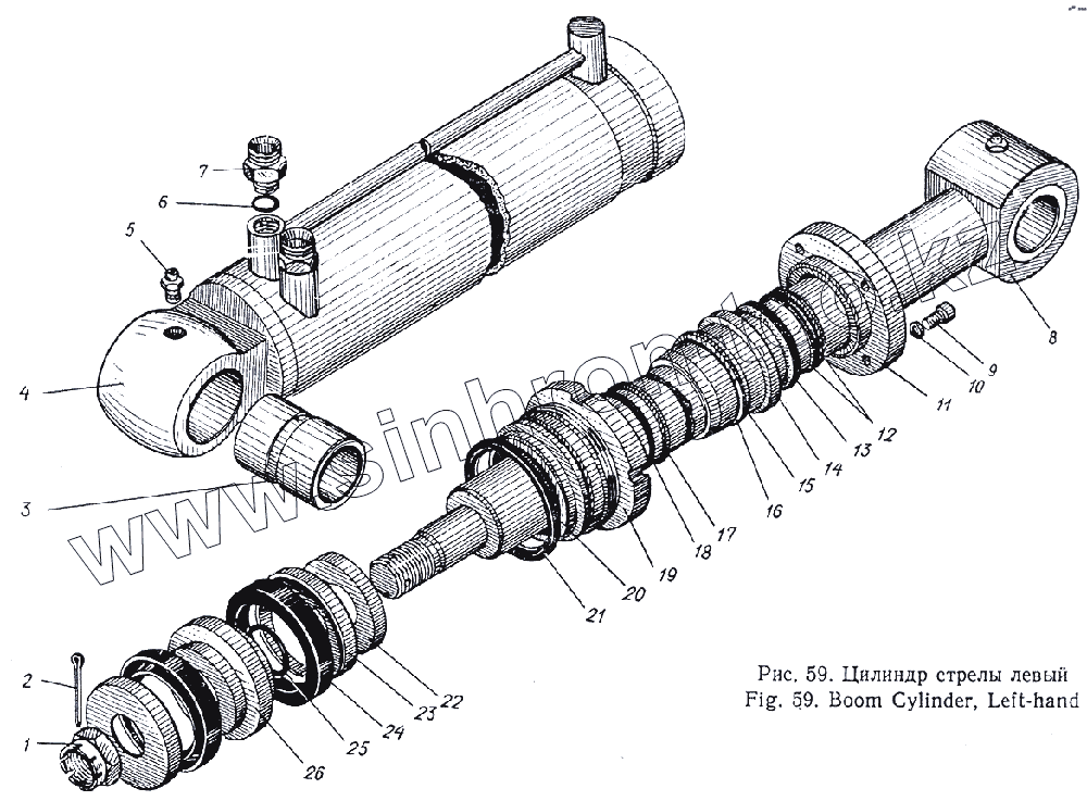 Каталог запасных частей к технике: Атек Э-5015А. Цилиндр стрелы левый