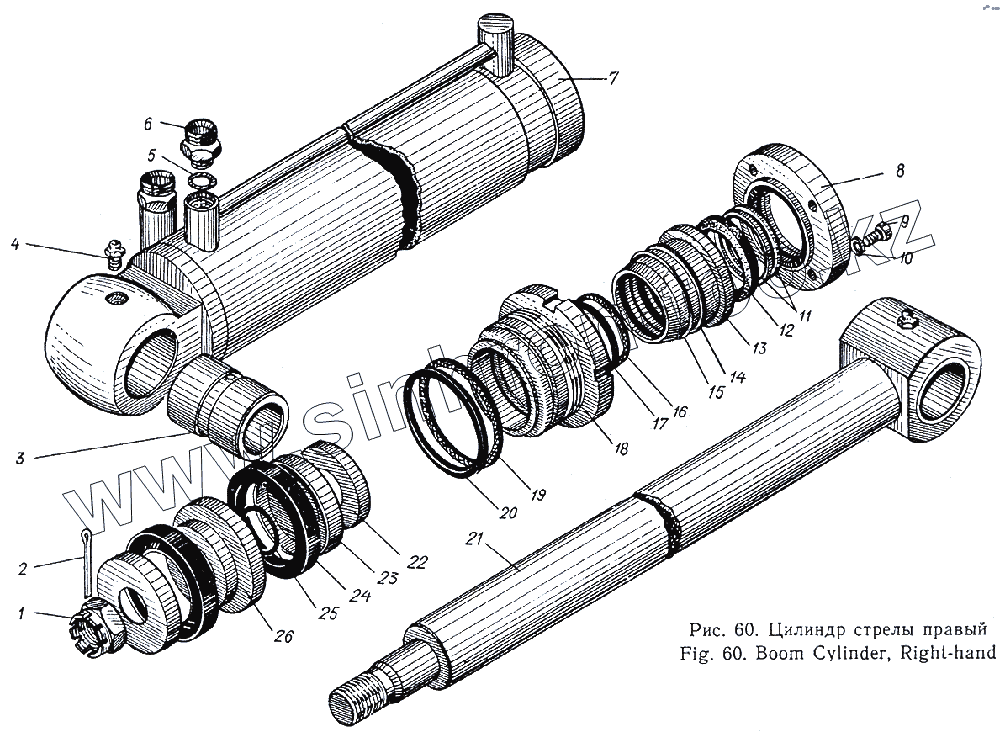 Каталог запасных частей к технике: Атек Э-5015А. Цилиндр стрелы правый