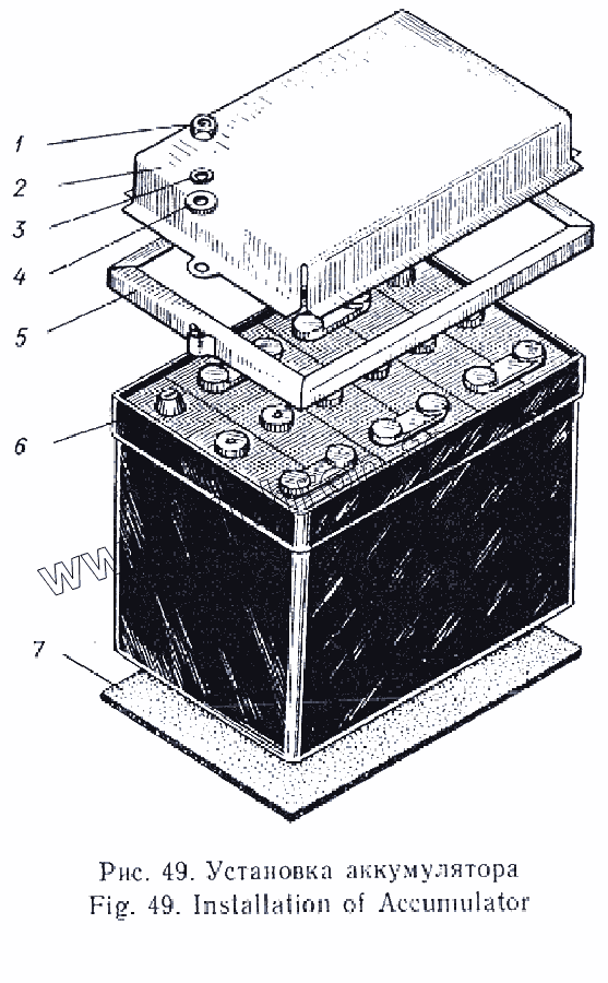 Каталог запасных частей к технике: Атек Э-5015А. Установка аккумулятора
