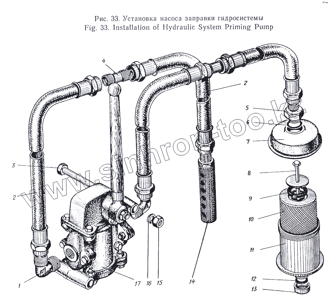 Каталог запасных частей к технике: Атек Э-5015А. Установка насоса заправки гидросистемы